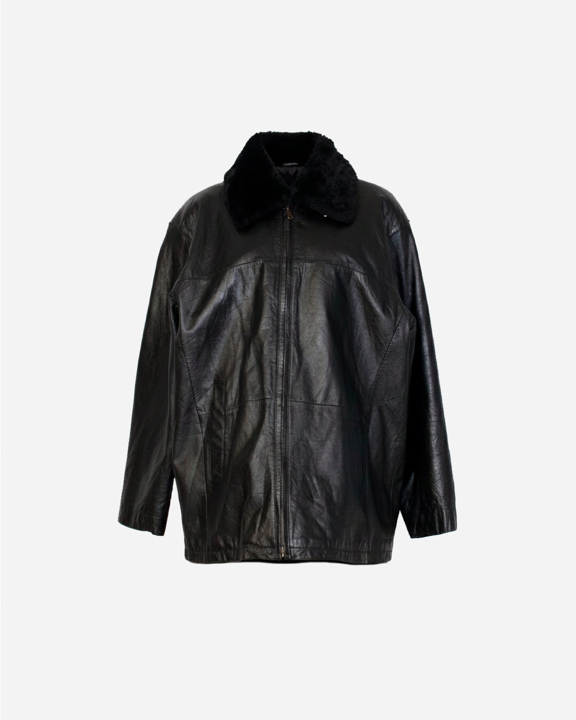 Exterior: cuero genuino | Forro: poliéster | Cuello: pelo sintético (faux fur)